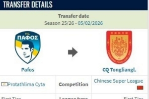 在重庆铜梁龙官宣塞浦路斯球队帕福斯边锋迪马塔租借加盟后,德转网站显示他的租借费为250万欧。
