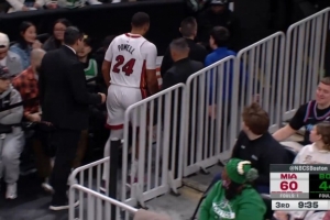 GIF-鲍威尔突破伤到手指,回更衣室了