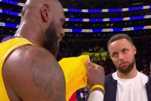 库里:让我们一起干点大事啊!詹姆斯:再说吧可能要下赛季了!