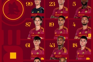 罗马首发:99-斯维拉尔;23-詹卢卡·曼奇尼、5-恩迪卡、87-吉拉迪、19-切利克;4-克里斯坦特、61-皮西利、43-韦斯利、18-苏莱、7-佩莱格里尼;14-马伦。